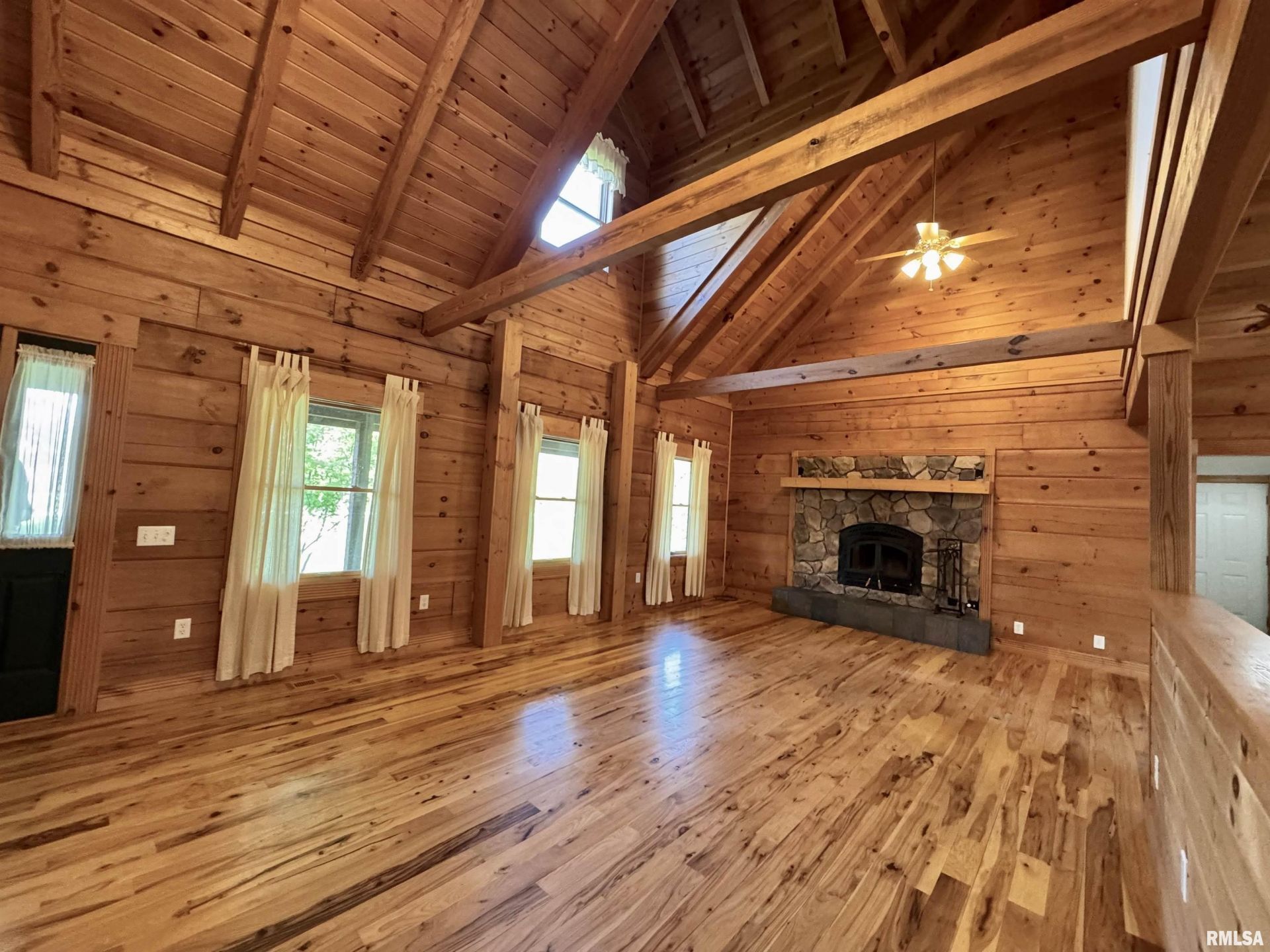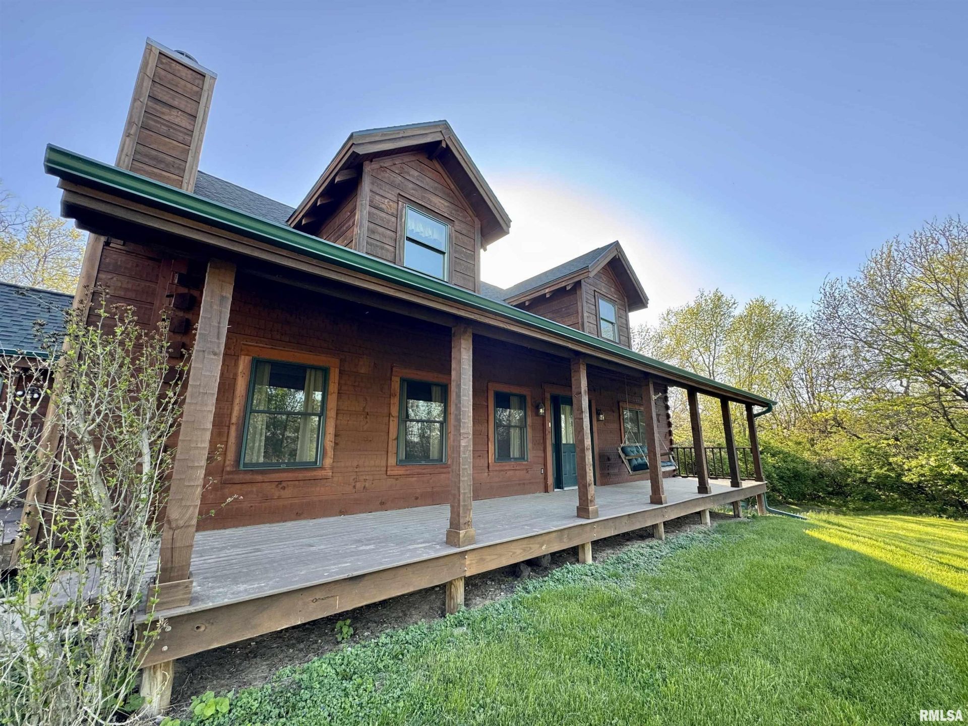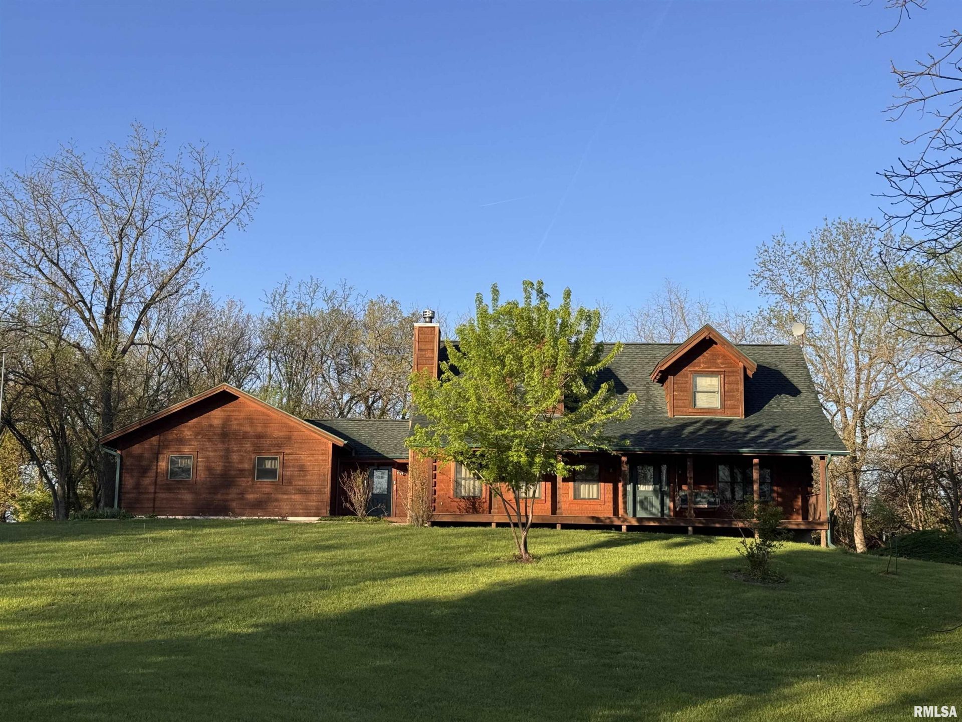 A home like no other sits on the south edge of Macomb, on 4.36 acres. This log home, built in 2006, has an open floor plan with vaulted wood-beam ceilings and lots of windows, offering views of the park-like setting. The main level of the home has a large living room with a wood-burning fireplace, a 21 vaulted beam ceiling, and is open to the dining and kitchen. Off the dining room is a sunroom with lots of windows with wonderful views. The primary bedroom is on the main level and features a large walk-in closet and a full bath with a walk-in shower. The main level also has a laundry room with a half bath, and a large mud room off the oversized two-car attached garage. The upper level of the home has an open stairway and hall that overlooks the living area below, and you will find two bedrooms, a full bath, and a den/home office. The lower level of the home is currently unfinished but has a lot of potential for additional living space, with a walkout and room for a bathroom. This home has geothermal heating and cooling, new shingles, and new interior paint. Also on the property is a 48x30 Cleary Building, with two 12x8 overhead doors, concrete floors, and power, great shop space. Call today for more information on this one-of-a-kind property.