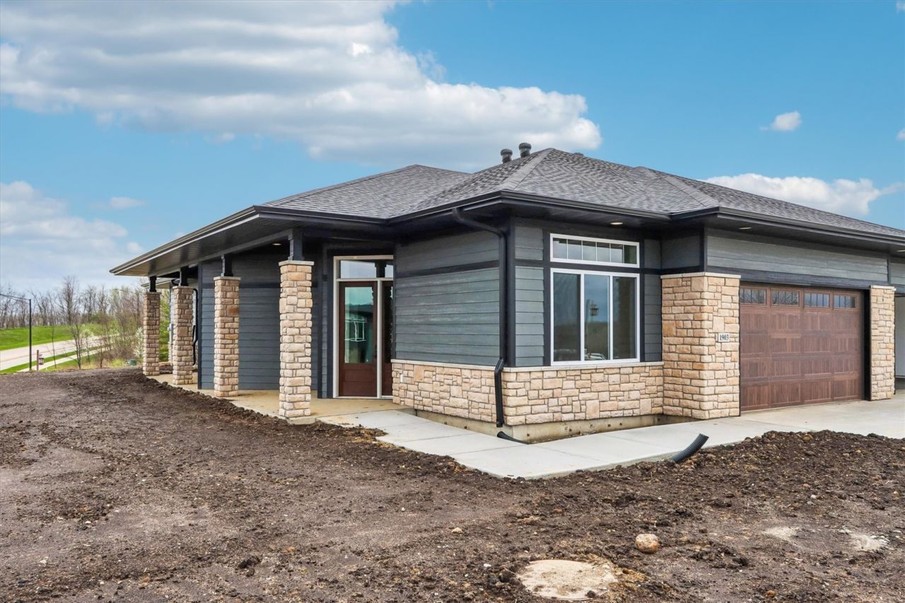xperience high-end, exclusive living at The Bluffs. This 1,887 sq ft duplex floorplan delivers refined single-story living with 2 bedrooms, 2 bathrooms, and a dedicated den. The layout is designed for functional flow and everyday comfort. The two-stall garage includes a rough-in for a future car charger, and the Smart Home Package comes standard for a streamlined, modern experience. Residents enjoy convenient access to Brown Deer Golf Course along with private pickleball and bocce ball amenities. The elevated setting offers premium views of the Coralville Quarry?an upscale environment with long-term value. HOA fees cover lawn care, snow removal, street maintenance, and amenity access. This is the Bluffs Plan. ***FLOORPLANS ARE CONCEPT ONLY AND MIRROR IMAGE ACTUAL BUILD WILL VARY. *** Under Construction with an estimated completion of early April 2026. No property tax and parcel ID information at time of listing.